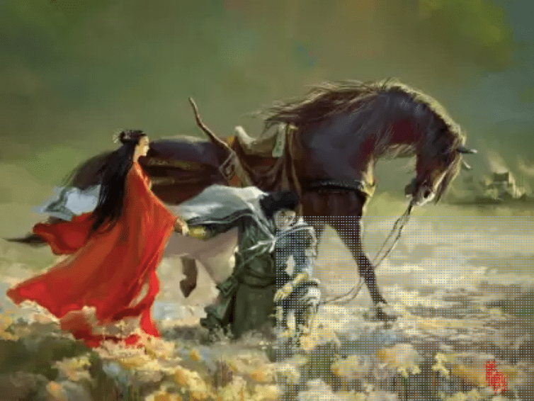 虞姬此时不愿去想今后的事,亦无暇敷衍眼前的人。她只是仍旧静静地看着乌骓的眼睛,仿佛要从那苍老疲倦的眸光中,看出几分昔日战火纷飞、热血沸腾的痕迹来。